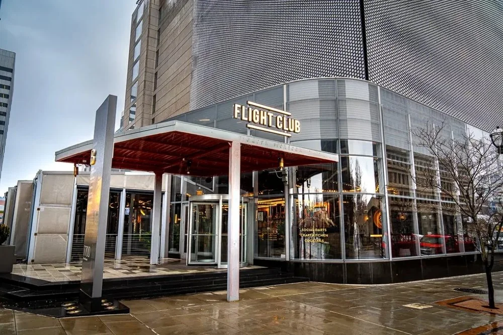 Flight Club Darts USA St. Louis is located at 7710 Forsyth Blvd, Clayton, MO 63105, (314) 887-7020, flightclubdartsusa.com.