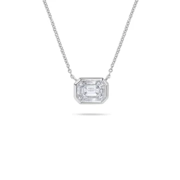 14K White Gold Emerald Pie Cut Diamond Bezel Set Solitaire Necklace, 14K Gold Diamond, Weight 0.37 carats, Chain length is adjustable 16-18", $3,564