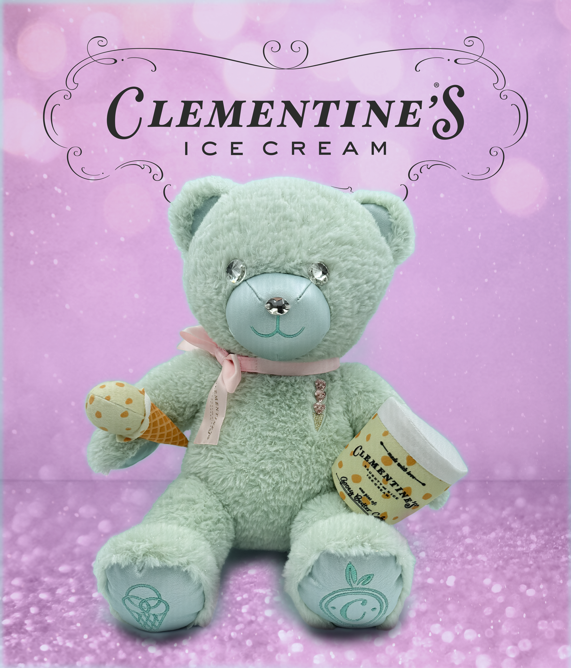 Meet the sweetest collab of the season from two cherished St. Louis companies— the Build-A-Bear Clementine’s furry friend made just for grown-ups! With Clementine’s signature sweet mint fur and sparkling faux crystals on its eyes and nose, this luxe bear holds a cone in one paw and a pint of our award-winning Gooey Butter Cake ice cream in the other. It’s a heartfelt holiday treat for the ice cream-obsessed collector with a taste for whimsy! Each bear comes in a Build-A-Bear Cub Condo along with a gift certificate for a pint of our famous Gooey Butter Cake ice cream.