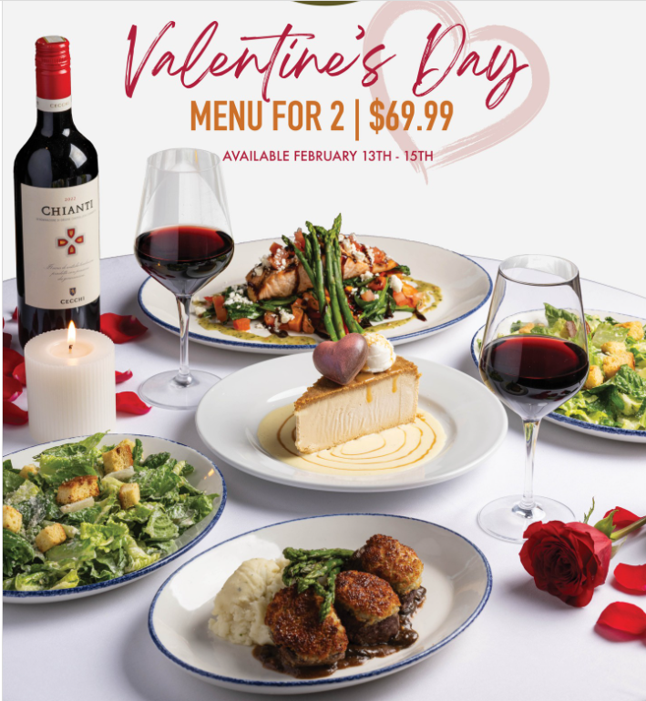 For Valentine’s Day 2026, Brio in St. Louis is offering a special three-course "Amore Menu" for $69.99 per couple, featuring options like lobster/shrimp fettuccine or beef medallions, available for dine-in or to-go on February 14.