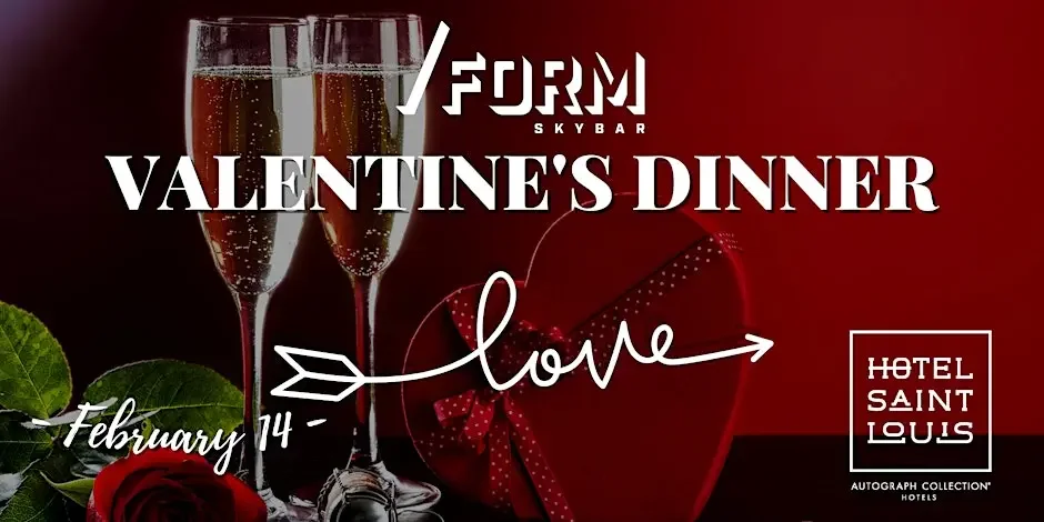 Celebrate Valentine’s Day Saturday, Feb 14 from 5 pm to 10 pm with an elevated rooftop dining experience at Hotel Saint Louis. Join them at Form Skybar for Rooftop Love Affair, a romantic prix fixe Valentine’s dinner paired with curated courses, live music, stunning rooftop ambiance, and an intimate dining setting. Celebrate Valentine’s Day with an elevated rooftop dining experience at Hotel Saint Louis, featuring live music throughout the evening. More information at Hotel Saint Louis, Autograph Collection St. Louis, MO.