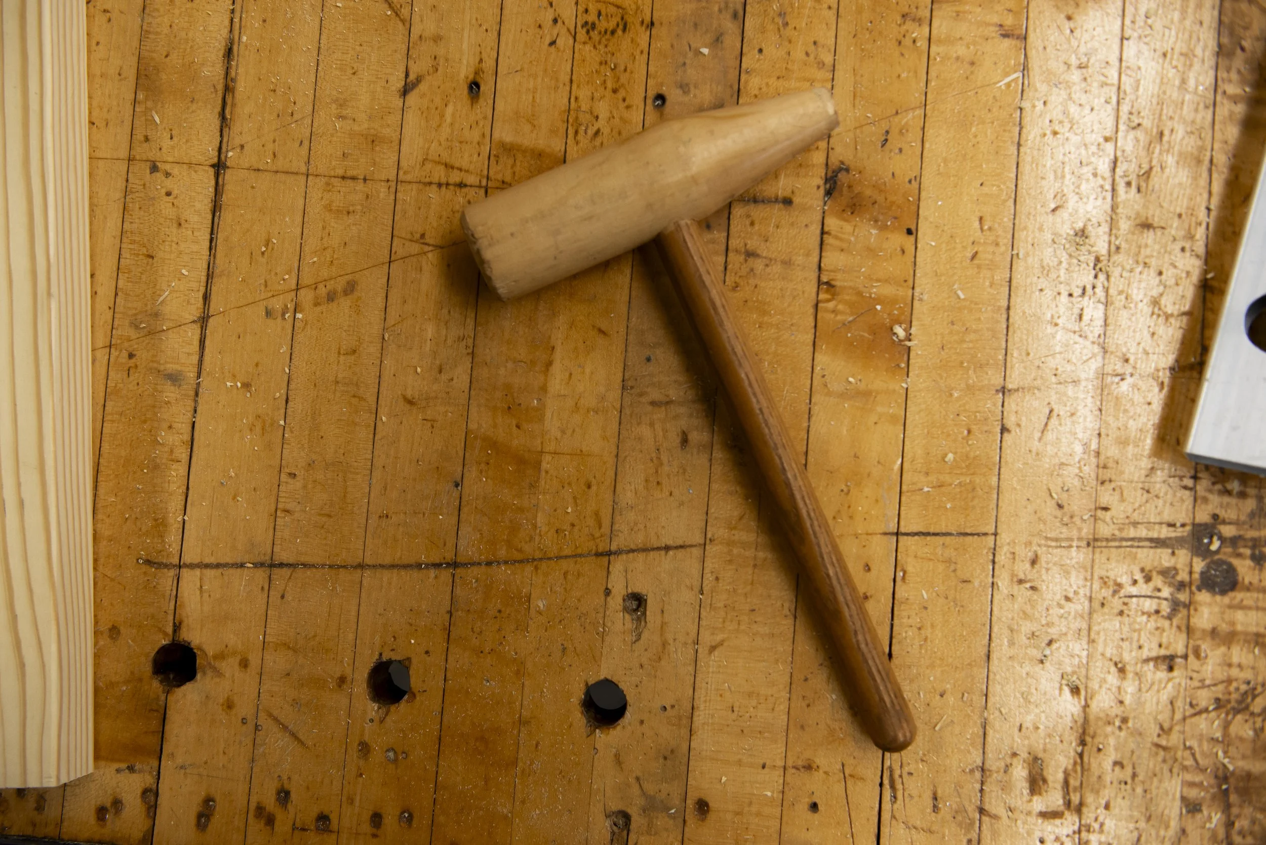 “Don’t step on the nails!” he half bellows when someone is about to do exactly that. Or: “No. Not around. Up and down,” when he spots Dixon and Stiens sanding a panel of beadboard against the grain. Or: “You need to relax,” when one of his students exhibits a moment of frustration with their morning’s assignment.