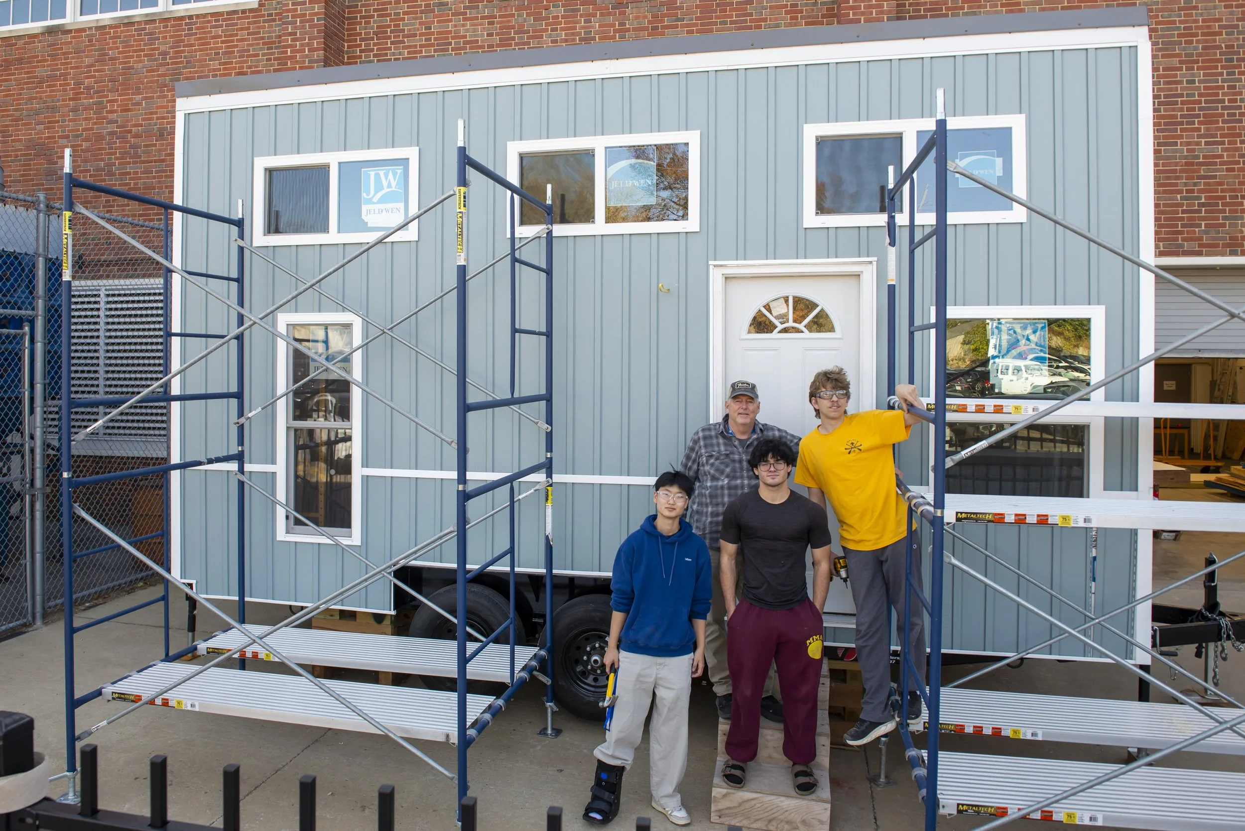 “This is the tiny home factory.” Edwards waves a hand around the open, garage-style space which used to house the school’s old swimming pool. “I’ve a recipe for these things.” He means this is not his first rodeo; that after building others at Eureka High School in the Rockwood School District where he taught for five years, he can almost do it in his sleep.