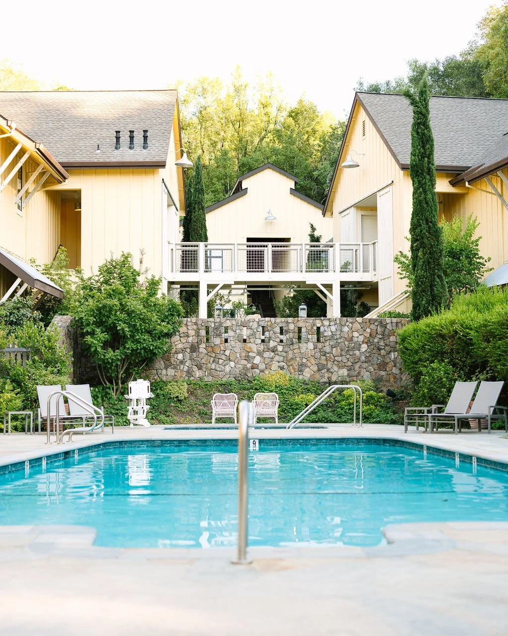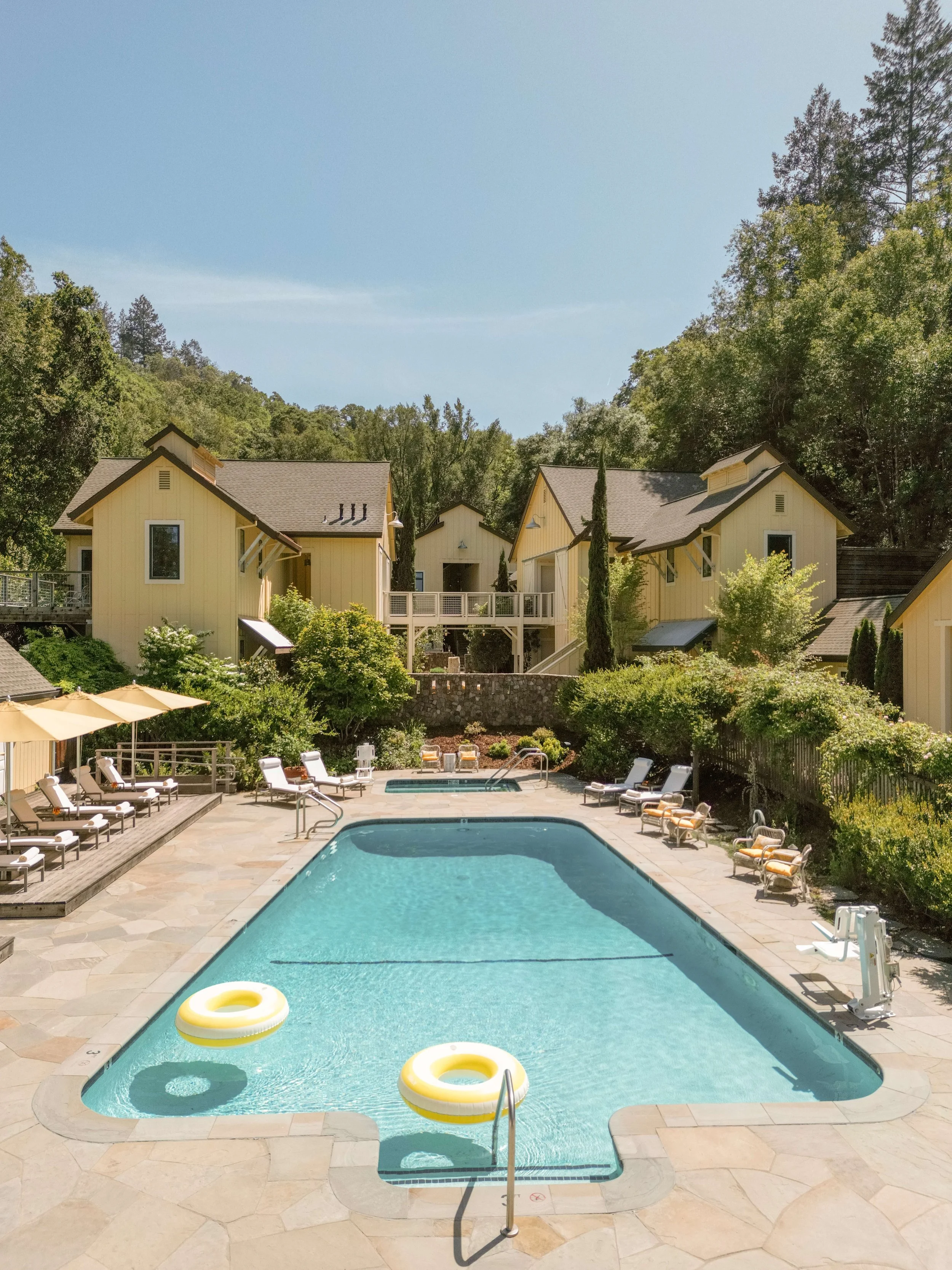 Although it's just a few miles from Healdsburg, Farmhouse Inn, nestled in among towering trees in the Russian River Valley, feels worlds away. A former 19th-century family homestead, the boutique property, also part of Foley Entertainment Group, maintains a homelike appeal with just 25 rooms generously spaced around the wellness barn and garden pool.