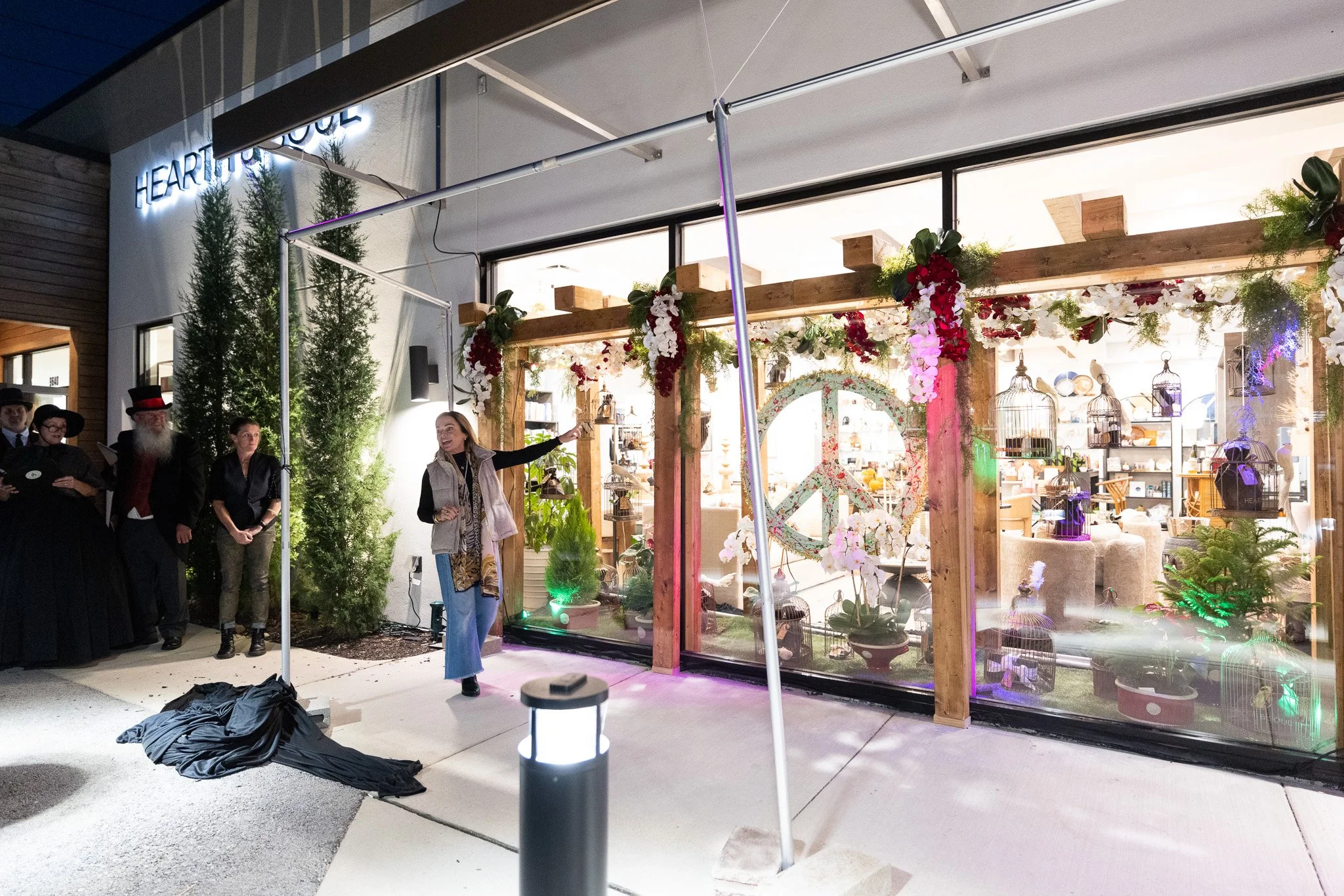 Reminiscent of the iconic New York style window displays, Peace on Earth came to life sending an important message of the importance of community, unity, and harmony. Working with local community partners including Ken Meisner and Maura Pusateri, the beautiful, floral pergola features 25 golden bird cages that turn into advent giveaways starting December 1. From diamonds to bath salts the community can follow along @shophearthandsoul on Instagram to see the daily feature and come into the store to register to win. Daily drawings each day will bring joy throughout the month of December.