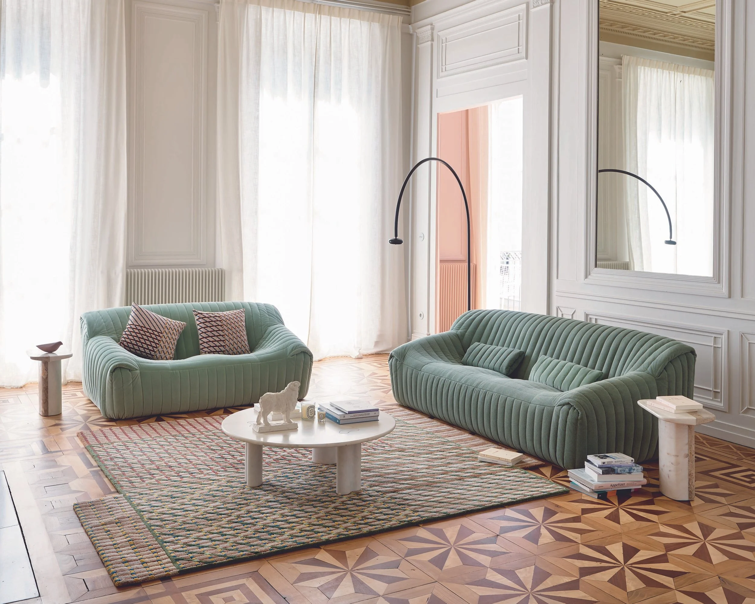 Ligne Roset reintroduced Sandra, created by Annie Hieronimus who was the sole female designer at the company’s design at the company’s design studio when the soft, sculptural sofa was launched in 1975. The new version remains true to Hieronimus’ original vision — flexible, plush, end endlessly inviting — while integration Ligne Roset’s unmatched expertise in all foam seating, including multi-density foams for better support, a built-in lumbar cushion, and an ultra-lightweight construction that moves easily between spaces.