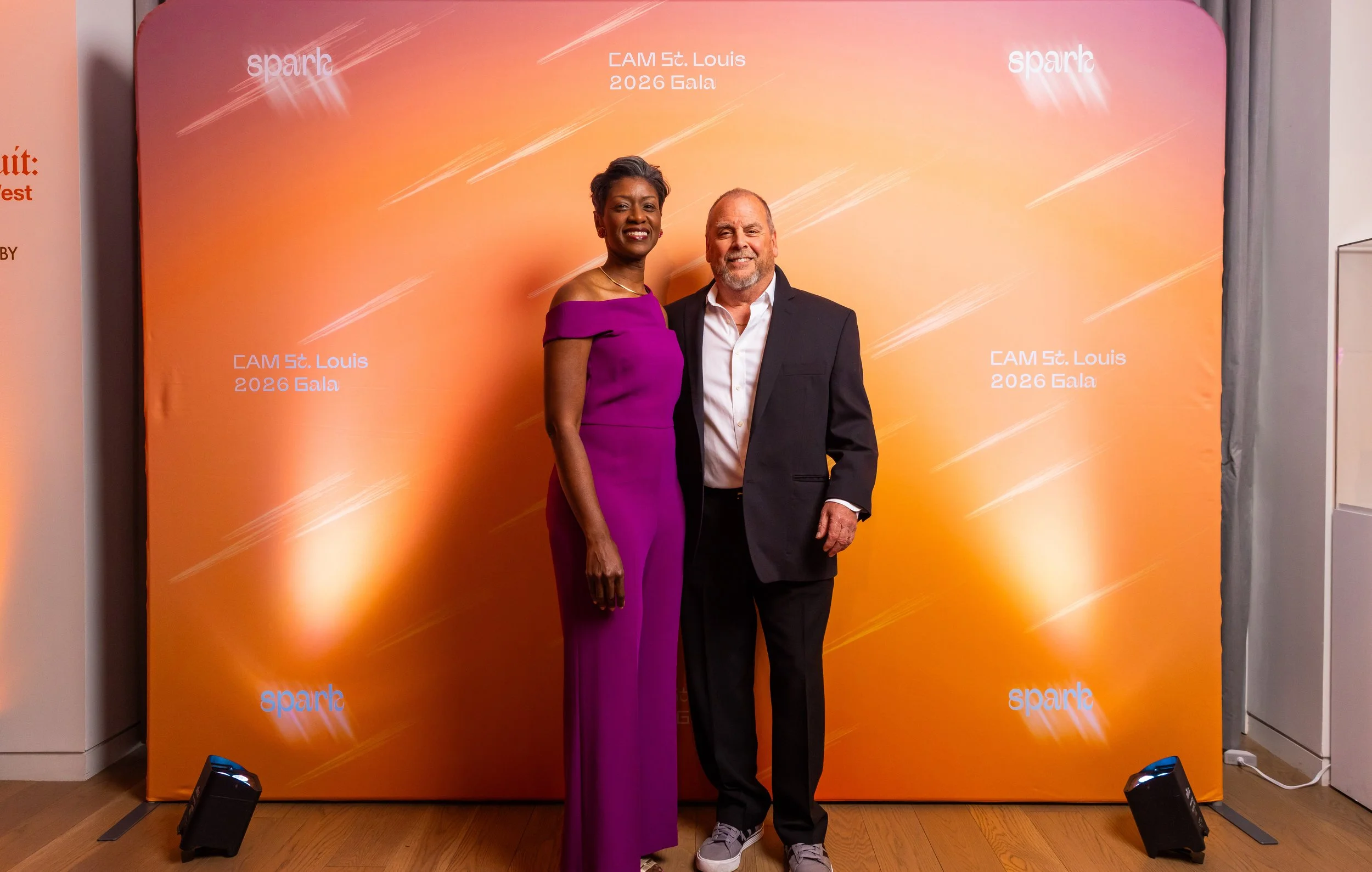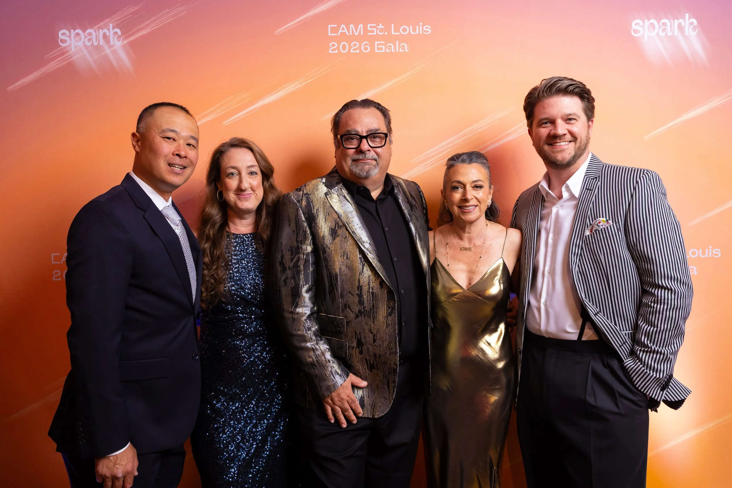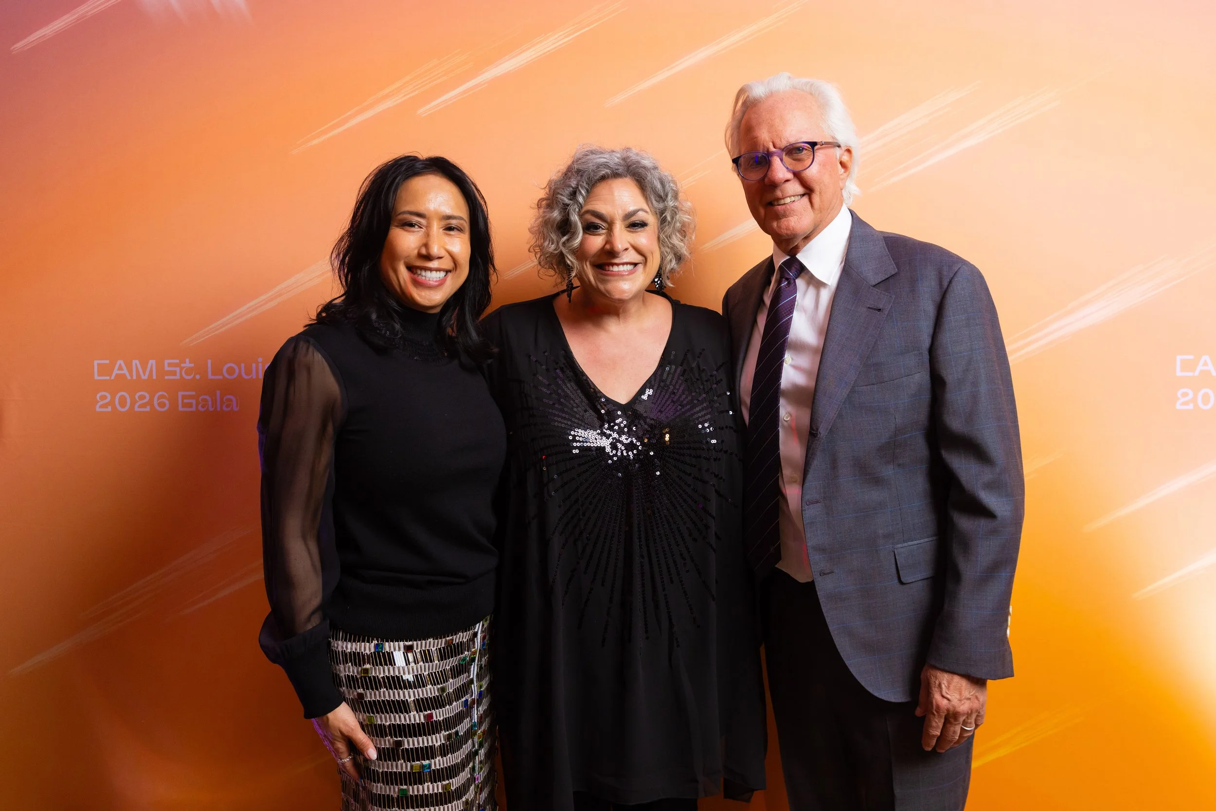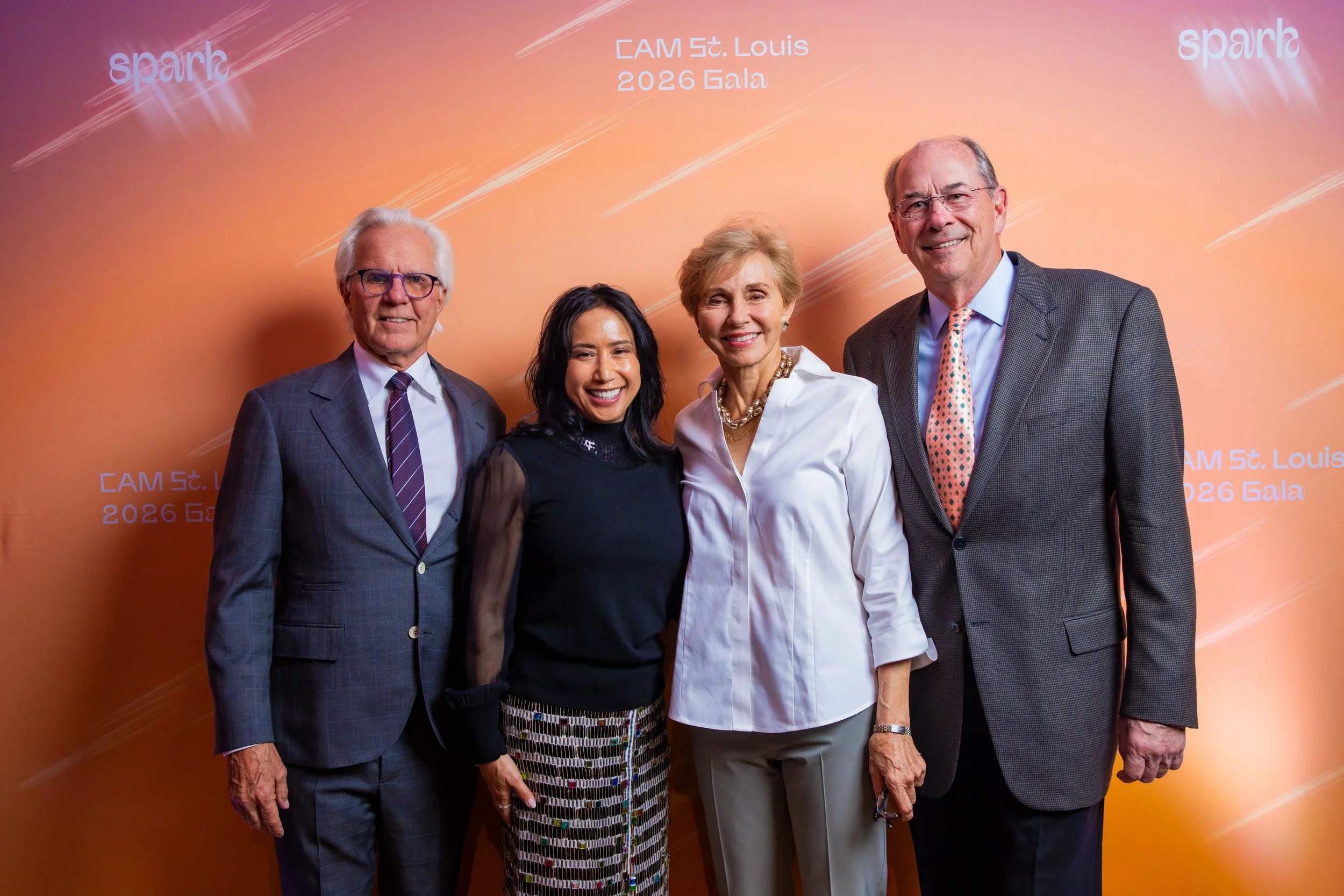 This year's theme, Spark, commemorated the ways art serves as a beacon of creativity, imagination, and possibility across the St. Louis region. Guests arrived dressed to dazzle in shimmering cocktail attire, lighting up the night with every sparkling entrance. The night began with cocktails and mingling before guests moved into a seated dinner. CAM Executive Director Lisa Melandri set the tone for the evening, highlighting art as the spark that lives within all of us and CAM’s positive, lasting impact on the St. Louis community. Gala Chairs Jane and Bob Clark welcomed guests with genuine enthusiasm, recognizing the evening’s sponsors and supporters who made the night possible. Before the evening fully ignited, CAM paused to honor the memory of Emeritus Board Member John H. Ferring IV who died in March 2026. Honorary Gala Chairs Alexis M. Cossé and Erik Karanik also took the stage. Cossé has served on CAM's Board of Directors for over 15 years, and together with Karanik, they have been among the Museum’s most devoted and visionary champions. The Fund the Need auction was led by local journalist Chelsea Haynes, whose radiant charm and irrepressible energy inspired a robust, joyful moment of giving, igniting a spark that will glow for years to come. As the clock struck 9:00 pm, guests made their way to the Spark Lounge—where the night continued to glow over nightcaps and the luminous sounds of local saxophonist Rhoda G.