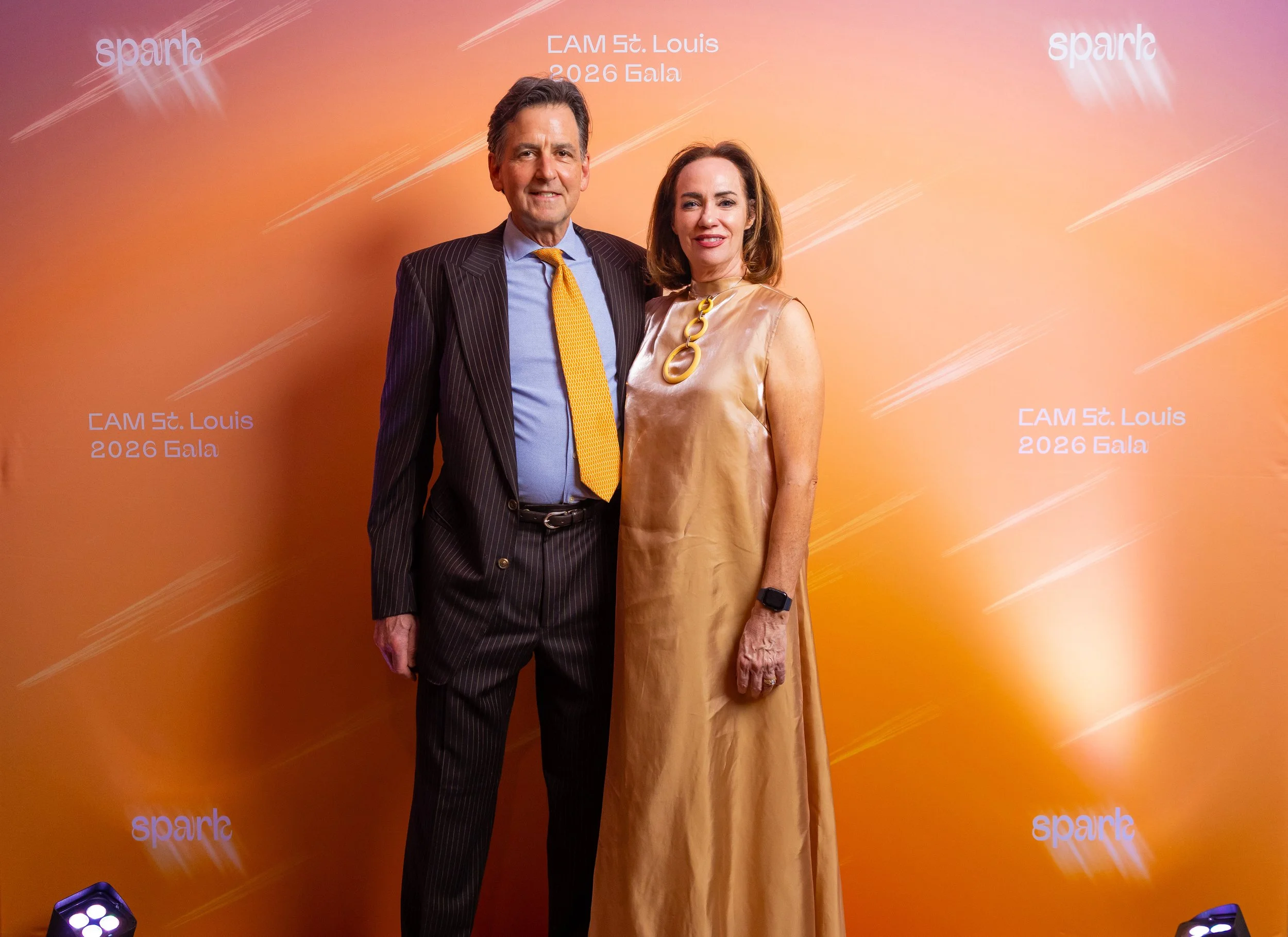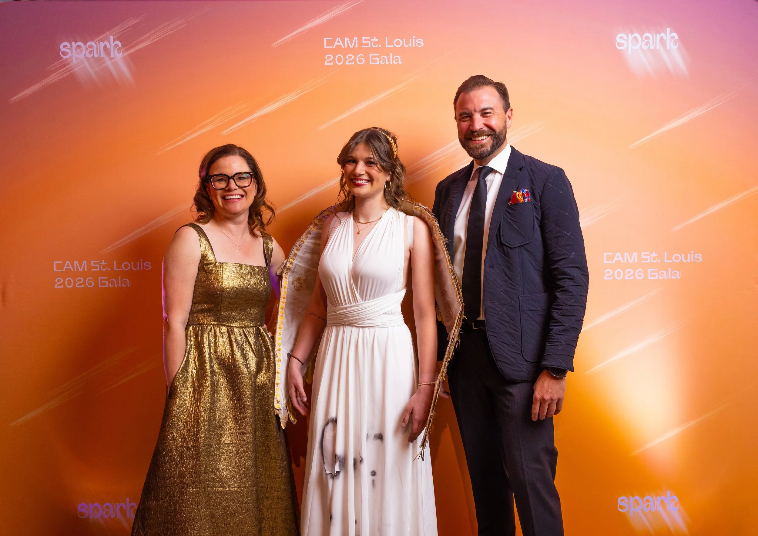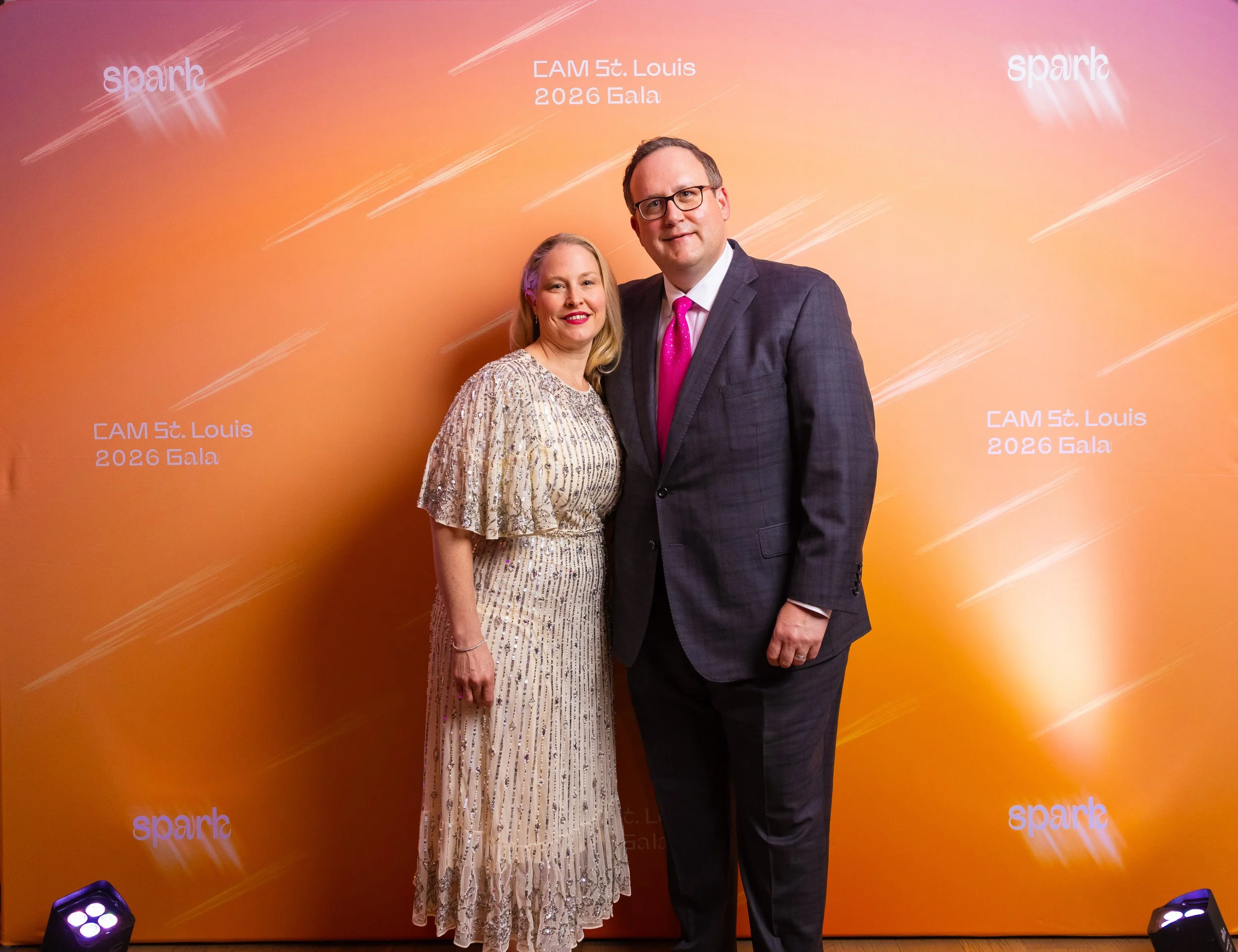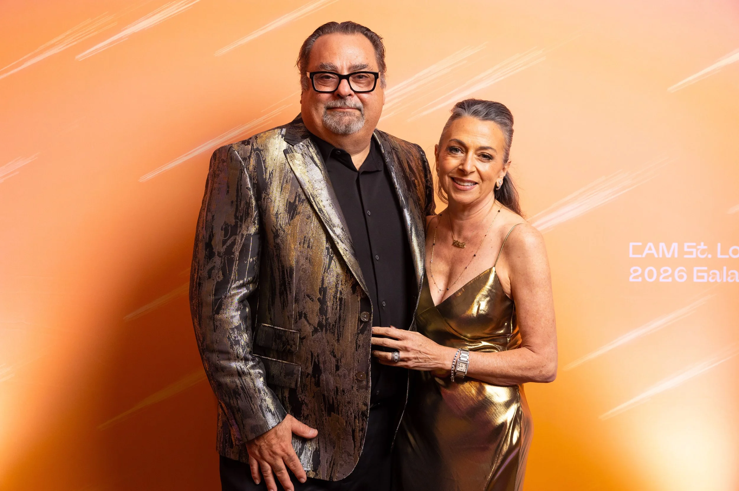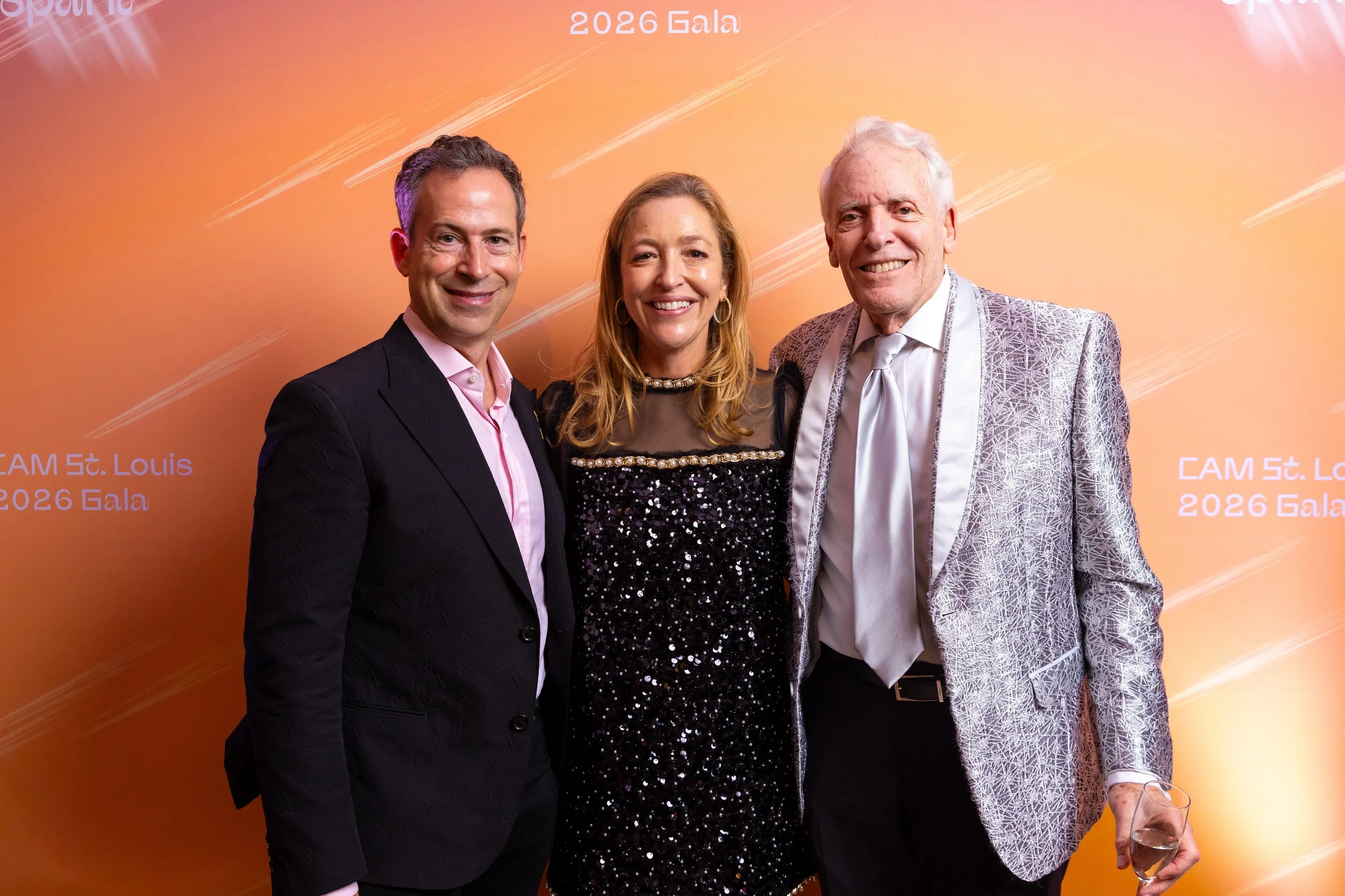This year's theme, Spark, commemorated the ways art serves as a beacon of creativity, imagination, and possibility across the St. Louis region. Guests arrived dressed to dazzle in shimmering cocktail attire, lighting up the night with every sparkling entrance. The night began with cocktails and mingling before guests moved into a seated dinner. CAM Executive Director Lisa Melandri set the tone for the evening, highlighting art as the spark that lives within all of us and CAM’s positive, lasting impact on the St. Louis community. Gala Chairs Jane and Bob Clark welcomed guests with genuine enthusiasm, recognizing the evening’s sponsors and supporters who made the night possible. Before the evening fully ignited, CAM paused to honor the memory of Emeritus Board Member John H. Ferring IV who died in March 2026. Honorary Gala Chairs Alexis M. Cossé and Erik Karanik also took the stage. Cossé has served on CAM's Board of Directors for over 15 years, and together with Karanik, they have been among the Museum’s most devoted and visionary champions. The Fund the Need auction was led by local journalist Chelsea Haynes, whose radiant charm and irrepressible energy inspired a robust, joyful moment of giving, igniting a spark that will glow for years to come. As the clock struck 9:00 pm, guests made their way to the Spark Lounge—where the night continued to glow over nightcaps and the luminous sounds of local saxophonist Rhoda G.