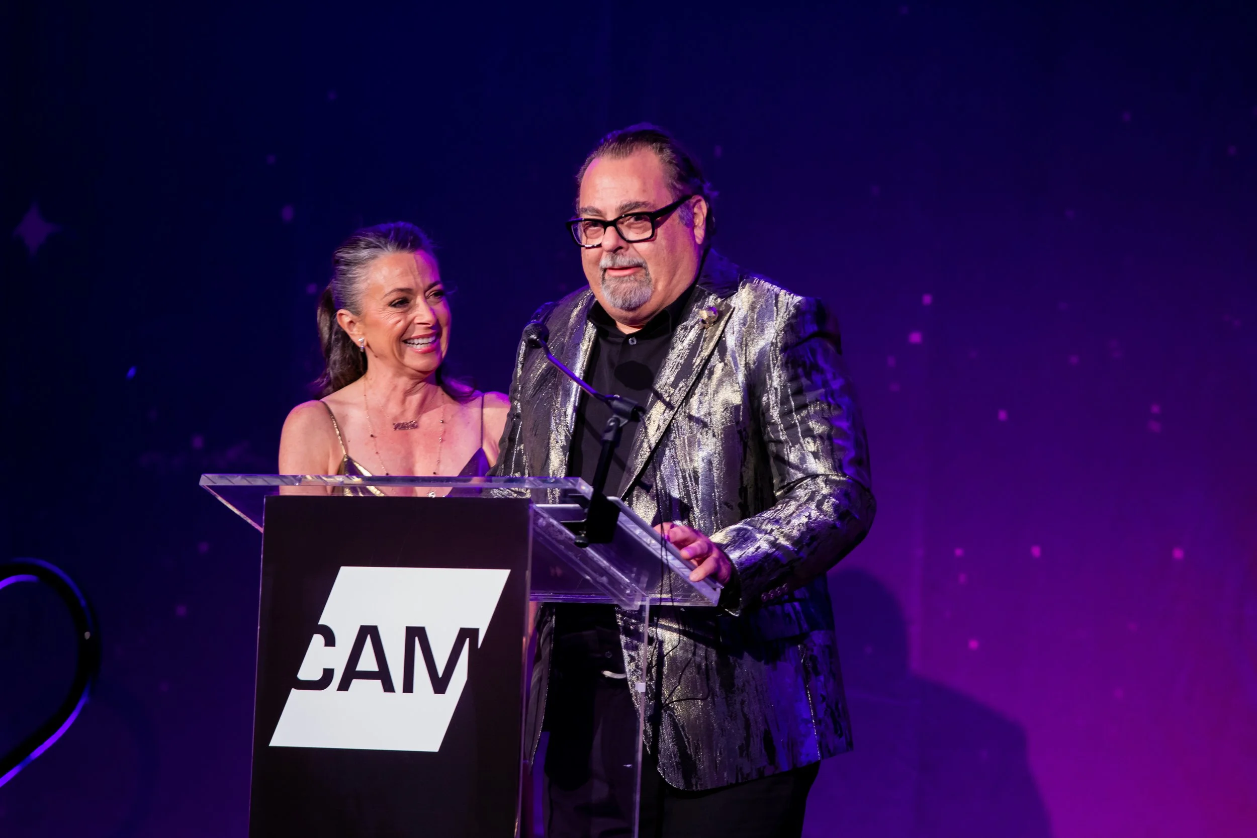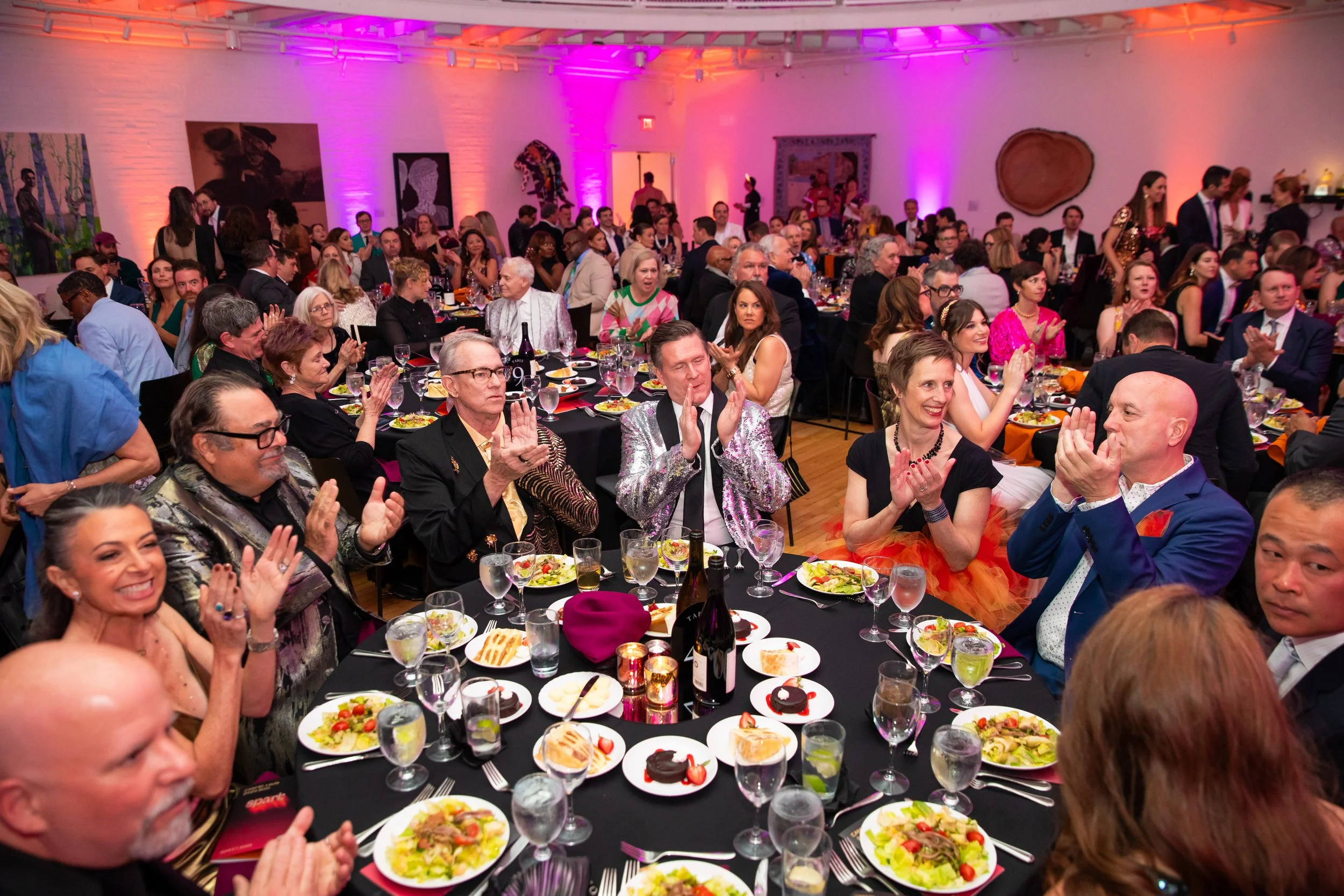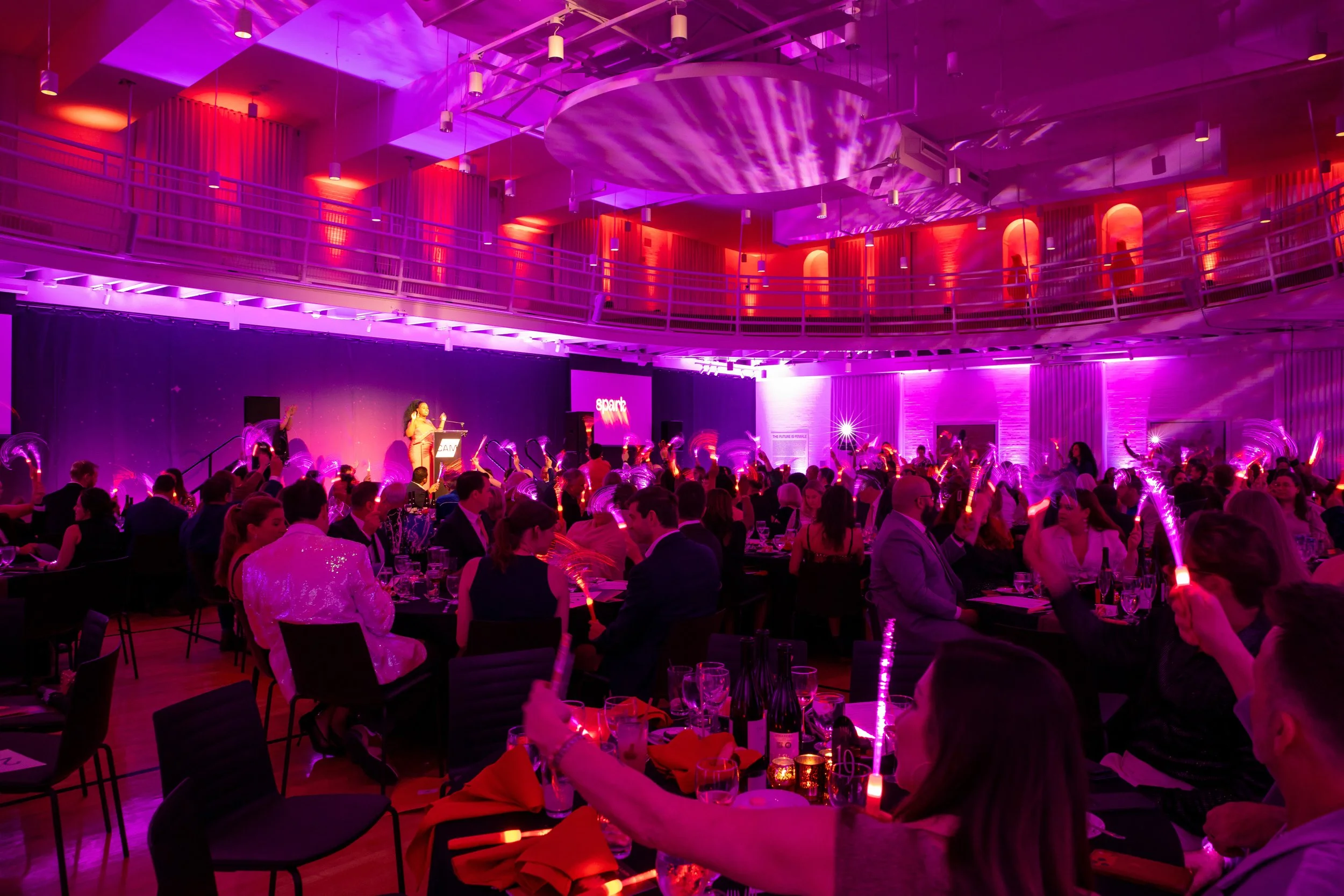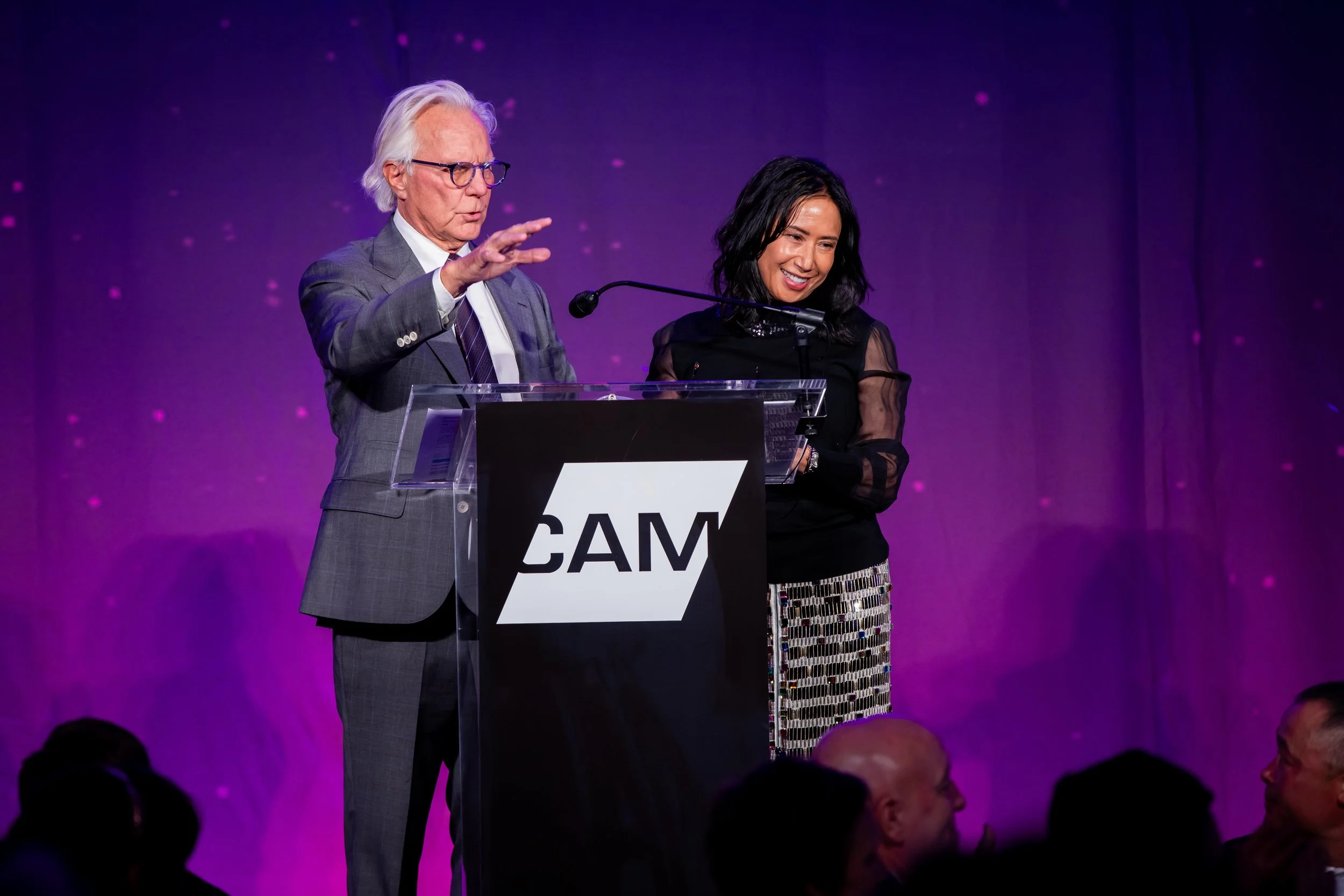 This year's theme, Spark, commemorated the ways art serves as a beacon of creativity, imagination, and possibility across the St. Louis region. Guests arrived dressed to dazzle in shimmering cocktail attire, lighting up the night with every sparkling entrance. The night began with cocktails and mingling before guests moved into a seated dinner. CAM Executive Director Lisa Melandri set the tone for the evening, highlighting art as the spark that lives within all of us and CAM’s positive, lasting impact on the St. Louis community. Gala Chairs Jane and Bob Clark welcomed guests with genuine enthusiasm, recognizing the evening’s sponsors and supporters who made the night possible. Before the evening fully ignited, CAM paused to honor the memory of Emeritus Board Member John H. Ferring IV who died in March 2026. Honorary Gala Chairs Alexis M. Cossé and Erik Karanik also took the stage. Cossé has served on CAM's Board of Directors for over 15 years, and together with Karanik, they have been among the Museum’s most devoted and visionary champions. The Fund the Need auction was led by local journalist Chelsea Haynes, whose radiant charm and irrepressible energy inspired a robust, joyful moment of giving, igniting a spark that will glow for years to come. As the clock struck 9:00 pm, guests made their way to the Spark Lounge—where the night continued to glow over nightcaps and the luminous sounds of local saxophonist Rhoda G.
