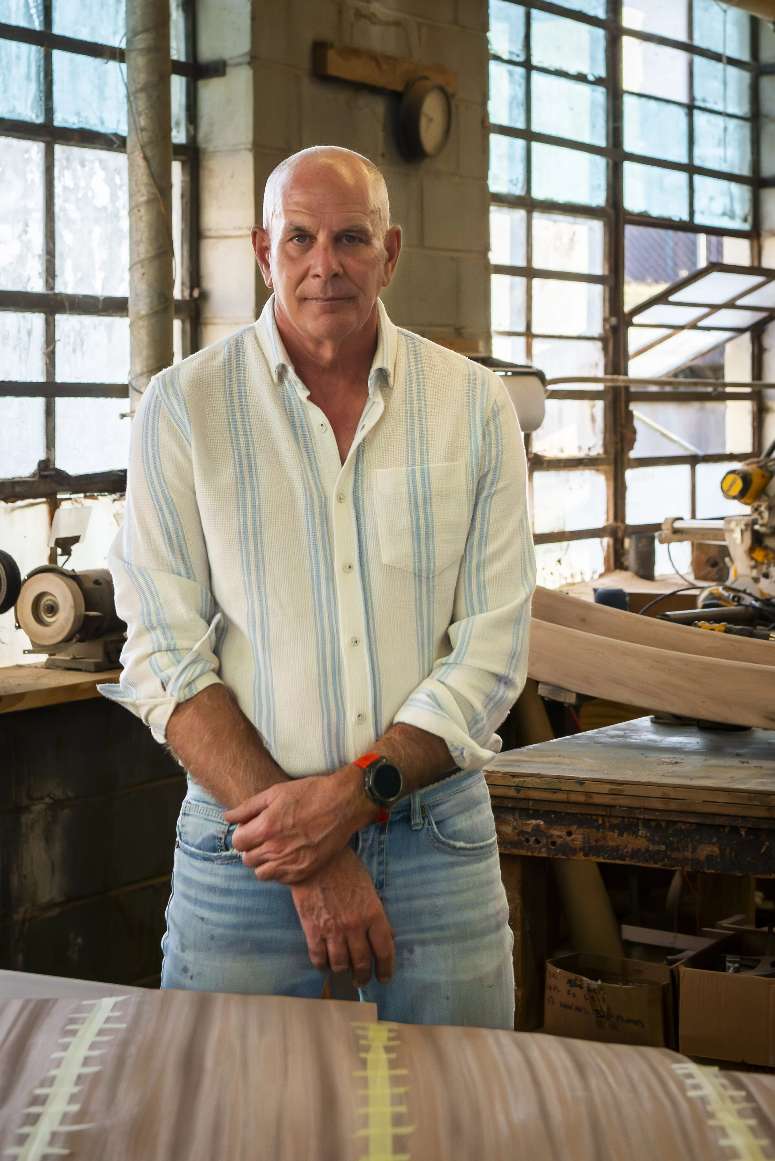You find Slattery around the back of a tattoo shop on Hampton Avenue. You know you’ve arrived somewhere rather interesting: The garage doors are open, the fans are going full pelt and, in the distance, behind some fine pieces of mid-century furniture and a huge dusty-blue sanding machine, Cathy Roth is working on the veneer for a commissioned mahogany dining table. She explains that she is working in sections: the table will measure 5-feet by 10-feet — too big for the veneer press. It will be oval in shape and purchased by an undisclosed buyer for around $17,000.