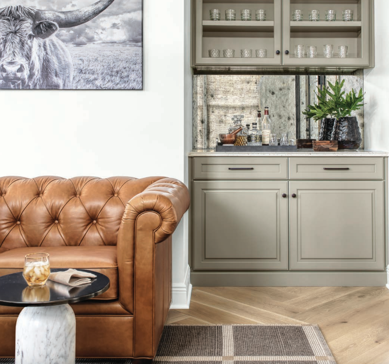 It was important to Chelsea that the Silverbergs’ forever home felt like them. “This project is an excellent representation of how you can take a home that functions but lacks character and weave in really interesting shapes, colors, and other elements as if they were there from the very beginning to create a look that’s fresh, sophisticated, and reflects the homeowners,” says Chelsea. “You can see that overall concept as soon as you walk in the door.”