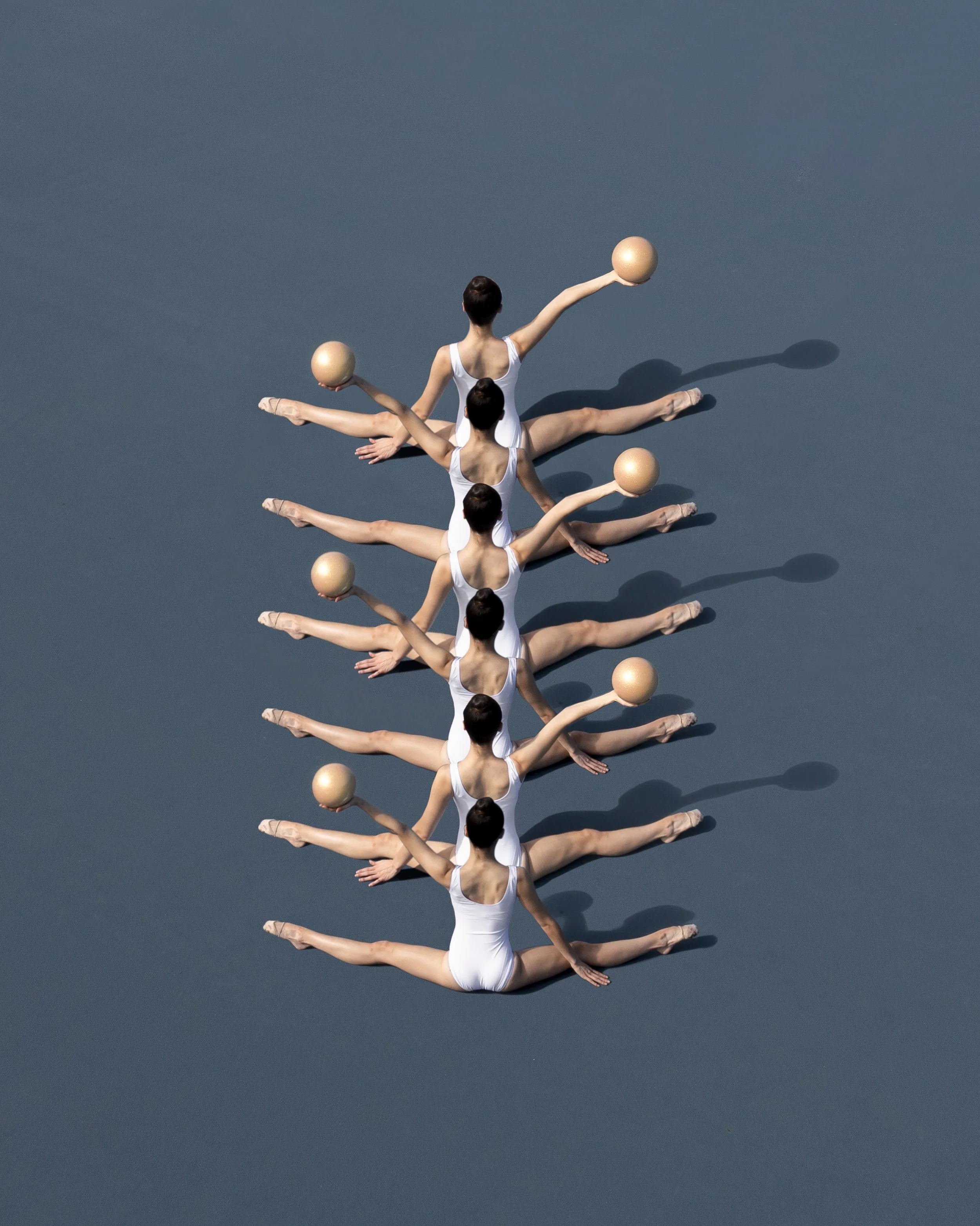 Brad Walls (b. 1992) is a New York-based visual artist originally from Sydney, Australia. He is known for his unique aerial perspective, transforming movement and everyday environments into minimalist works that emphasize symmetry and negative space. His subjects, including synchronized swimmers and ballet dancers, become studies in geometry and rhythm. The final product of his unique perspective is visually arresting, as the image transforms familiar scenes into something unexpected.