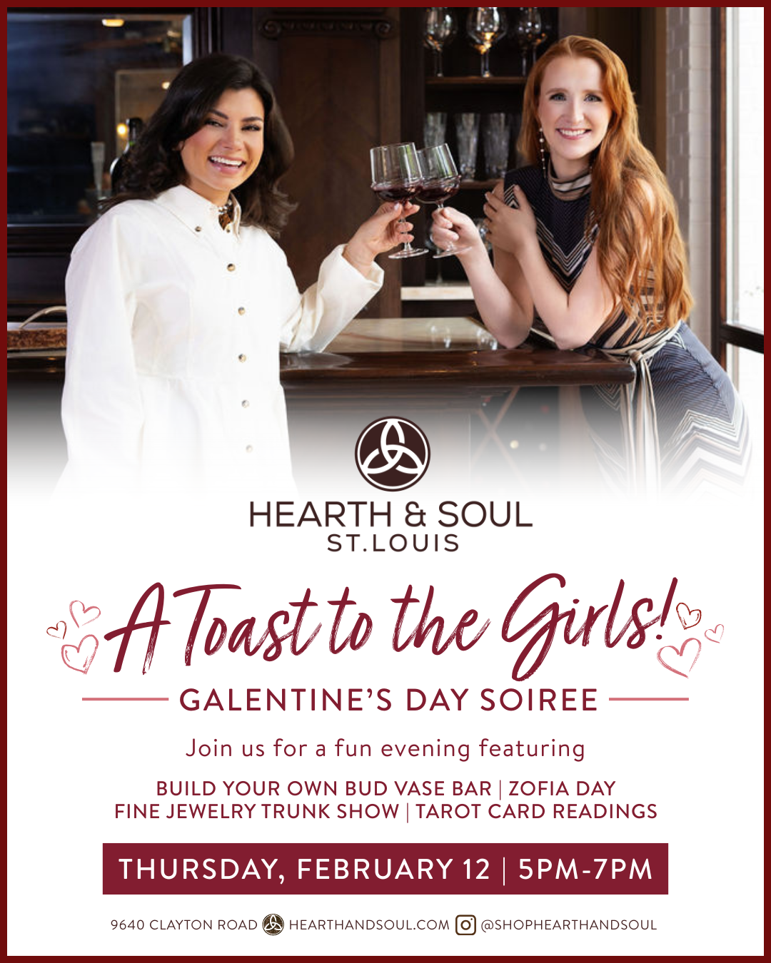 Let’s go girls! Join Hearth and Soul for Tarot Card reading, build your own bud vases and a trunk show from Zofia Day! Grab your gal pals and come to the Hearth!